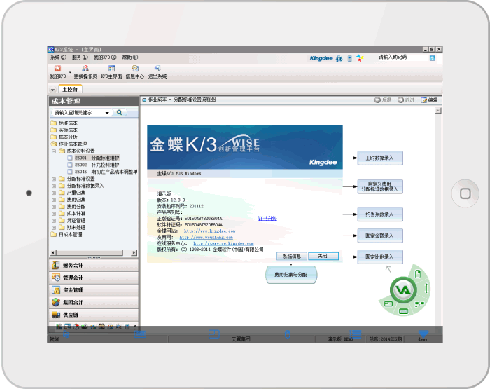 金蝶K3系统化是集供应链管理、财务管理、人力资源管理、客户关系管理、办公自动化、商业分析、移动商务、集成接口及行业插件等业务管理组件为一体,以成本管理为目标,计划与流程控制为主线,通过对成本目标及责任进行考核激励,推动管理者应用ERP等先进的管理模式和工具,建立企业人、财、物、产、供、销科学完整的管理体系。