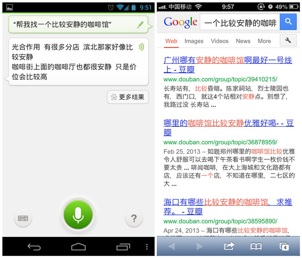 搜索的趋势一直都是更为智能的搜索,搜索巨头们一直致力于这个方向。苹果发布语音智能搜索 Siri 的时候曾被认为是对 Google 的巨大挑战,因为人们知道智能搜索是潜力更大的方向。可惜的是,Siri 由于其深度理解能力弱,许多时候没能真正理解人说话的意图,暂时没能成为一个杀手级应用。Google 在Android 4.2 中给大家带来的智能搜索产品 Google Now 备受赞誉,也证明了这是一个正确的方向。